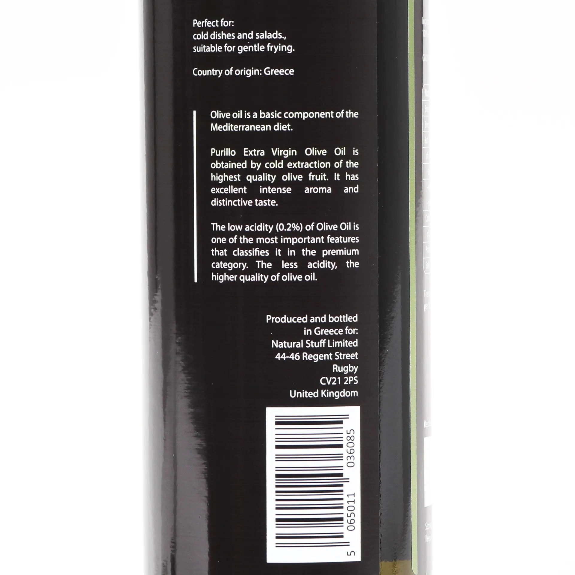 Oliwa z oliwek powstała metodą ekstrakcji na zimno starannie wyselekcjonowanych owoców oliwek. Proces ekstrakcji pozwala zachować w oliwie  wszystkie substancje naturalnie zawarte w owocu.